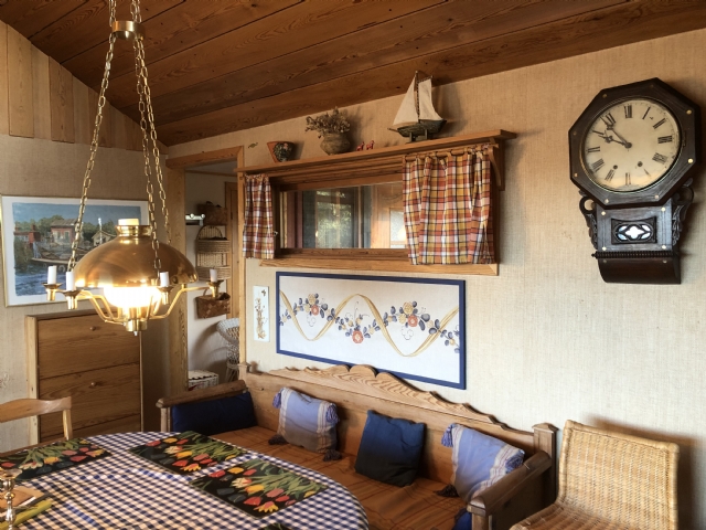 Huset ligger högt med en fantastisk utsikt över Hattsundet. Huset är ritat och byggt av min far som satsat på mycket hög takhöjd med ljusinsläpp från stora fönster samt högt belägna gavelfönster. Två altaner omgärdar huset, en vetter mot väst och en mot sydost. Utemöbler och en flyttbar grill finns. Det finns öppenspis, braskamin och vedspis.