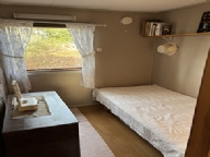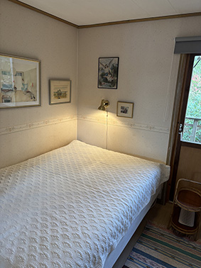 Separat Lillstuga med en 90 cm säng och en fällbar extrasäng med bra madrass.