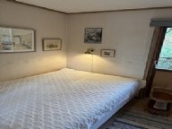 Alla rum har sjöutsikt förutom två av sovrummen, de har balkongdörrar mot en altan. Det största sovrummet har en 140 cm dubbelsäng, de andra två 90 cm sängar. Alla sängar har bra madrasser och är sköna att sova i. På sovloftet, med sjöutsikt, går det att sova 2-3 personer beroende på hur man bäddar. Parkering ca 13 m från huset med hårdgjord stig om ca 1,2 m bred gör det enkelt att nå huset från parkeringen.