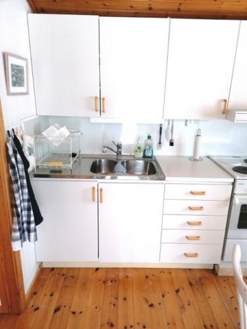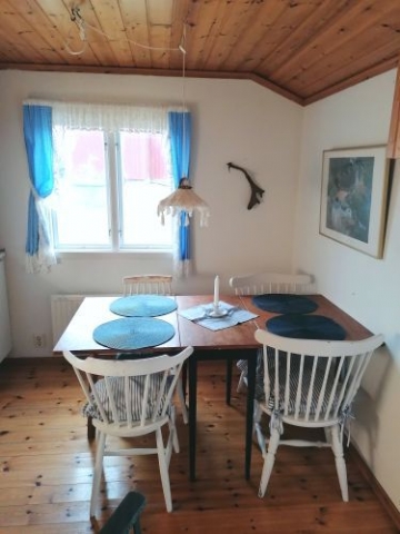 Två bäddar + en bäddsoffa för 2. Öppen planlösning i vinkel. Välutrustat kök med ugn och kyl / frysfack. Mulltoa med separett (alt i ett), dusch och varmvatten- ingång på sidan av huset. Fint ljust, högt läge på ett berg, med utsikt över byn Södersunda. Grill, utemöbler och solstolar finns.