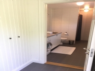 Nytt badrum (8 m2) med dusch, golvvärme, tvättmaskin och vattentoalett. Hallen har inbyggd garderob.