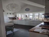 Övervåningen På övervåningen finns två sovrum ett med en dubbelsäng och ett med en dubbelsäng och en enkelsäng, badrum och stort kök samt ett större vardagsrum.