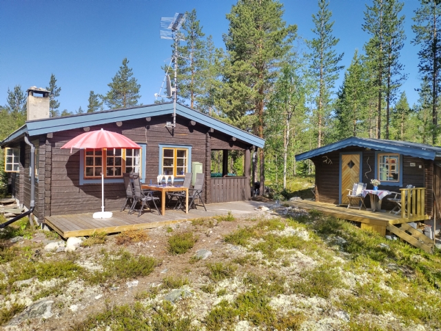 Stugan har hög mysfaktor, med bastu, öppen spis, böcker och sällskapsspel. två sovrum varav ett med dubbelsäng.