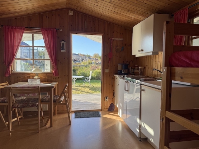 Mysig stuga på Bohus-Malmön - en av Bohusläns verkliga pärlor nära Kungshamn och Smögen. Här har du nära till både klippbad- och sandstränder - till härliga Kattesand är det bara några minuters promenad. Stugan har 4 bäddar (våningssäng och bäddsoffa) och är utrustad med trinettkök, kyl, micro och kaffebryggare. Altan finns i anslutning till stugan under tak med ingång till modern toalett och separat dusch. Utanför finns en uteplats med utemöbler och grill. Stugan är rökfri. Tillgång till bredband. På ön finns marina, gästhamnar, fiske, minigolf, tennisbana, mysiga restauranger, coopbutik, fiskaffär och den omskrivna utomhusscenen Stallebrottet ( Bohusläns Dalhalla) som bjuder på teater och musik under sommaren.