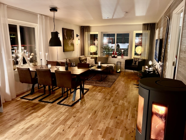 SKI IN/SKI OUT I STORHOGNA Nyproducerad lägenhet i barnvänliga Storhogna. Den ligger nära fantastiska längdspår och fina slalombackar. 78 kvm med tre sovrum. Två med dubbelsäng och ett med våningssäng 120/80 cm. Braskamin, bastu, wifi, TV 58” med kanaler från Allente, två wc, tvätt/tork mm. Ett sovrum har separat TV 50” för spel eller Chromecast/Apple TV (det tar ni med själva). Lägenheten ligger bredvid M-huset som har restaurang, bowling, shuffelboard, och minilivs. 1,5 km till Högfjällshotellet med SPA och två restauranger. Välj mellan två olika liftsystem direkt från lägenheten. Storhognas blå och gröna skidbackar är några stavtag bort. Eller ta knappliften till toppen av Klövsjös liftsystem, med hela 345 m fallhöjd och riktigt utmanande backar. Ett separat liftkort för enbart Klövsjö/Storhogn går att köpa betydligt billigare än Skistars vanliga liftkort (vilket även omfattar Björnrike och Vemdalsskalet). Vill ni testa Vemdalsskalet (10 min) eller Björnrike (30 min) går det gratisbussar dit en gång i timmen. Lägenheten är rök- och djurfri. Hyresgästen städar själv. Söndagsbyte.