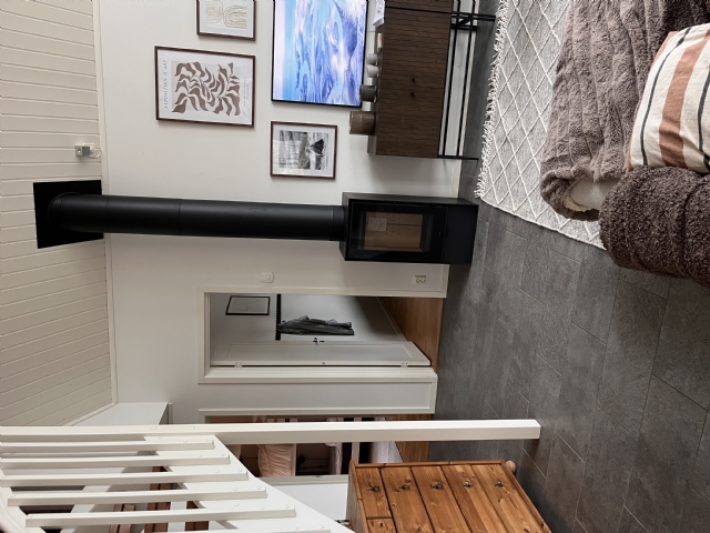 Det är en öppen och social planlösning mellan vardagsrum, kök och matplats. Vardagsrummet har stora fönster som ger ett härligt ljusinsläpp och det är även en mycket generös takhöjd som ger en trivsam känsla av rymd. Här finns även utgången till altanen. I vardagsrummet finns också den nyinstallerade braskaminen.