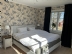 Övervåning - Allrum - Helkaklad toalett - Stort sovrum med dubbelsäng (180 cm), stor hörnsoffa och tv - Sovrum med dubbelsäng (160 cm), bäddsoffa och tv - Balkong med liten loungesoffa