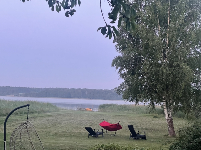 Huset ligger direkt vid vattnet. Här finns en roddbåt som ingår, och under sommaren finns möjlighet att hyra till motor. Perfekt för en tur i solnedgången eller en stilla morgon på fjärden.