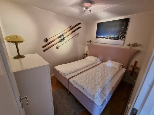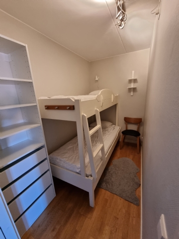 Sängplatser för 4 personer. Extra sängplatser kan ev. finnas, detta beslutas av hyresvärd. Två sovrum, ett rum med en dubbelsäng och ett med våningssäng.