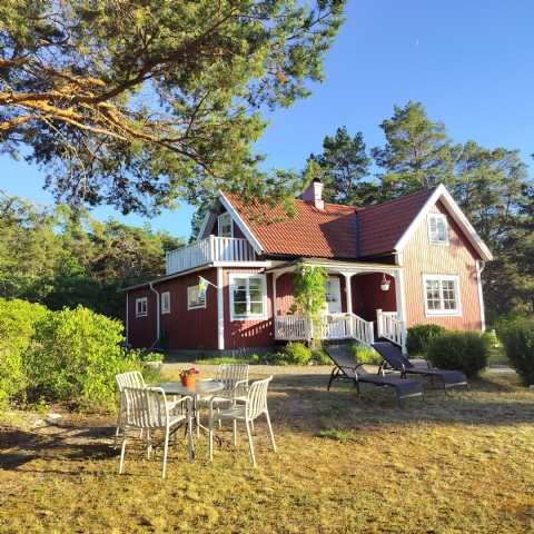 Diverse information: Liten veranda på framsidan av huset finns för morgonkaffet. Annars så finns utemöbler i trädgården både på fram och baksidan. Baden-baden stolar och några solsängar finns.. Till hamnen är det ca 400 meter där man kan strosa bland segelbåtar eller gå runt bland de små bodarna där både kaffe och hantverk säljes. Färja till Oskarshamn och Blå Jungfrun avgår dagligen. Fler bilder finns på vår hemsida. Länk finns på denna sidan.