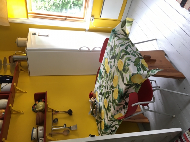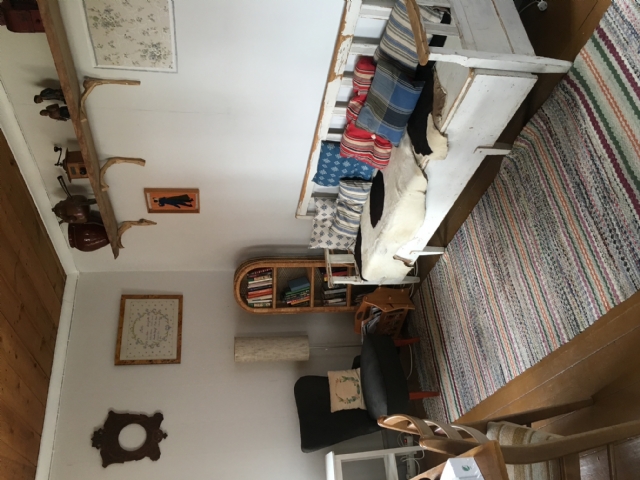 🏡 Huvudbyggnad i två våningar Fullt utrustat kök (ej diskmaskin) samt rymligt skafferi Mysigt allrum med stort matbord (plats för 8-10), liten soffgrupp och täljstenskamin. Toalett med rinnande vatten (ej dusch - här finns endast en mysig utedusch). På övervåningen finns fyra fasta sängplatser: en dubbelsäng (2x90cm) i eget rum och en våningssäng. Här finns även en bäddsoffa och gott om extra madrasser och plats att spela spel eller jobba i soffan. På bottenplan finns en dubbelsäng (140cm) i ett eget rum.