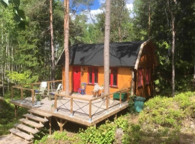 Alldeles för sig själv, längst bort på vår tomt ligger vår lilla stuga i en skogsglänta. Här är lugnt och tyst. Bara natur och på badrocksavstånd finns en varm badsjö. Hela området genomkorsas av härliga promenadstråk och det är en knapp km ner till havsviken. Herrbret, som vi kallar stugan, har en härlig altan i solläge på framsidan. Allt är fräscht och nybyggt i gammal stil men med modern standard och utrustning. Stugan är avsedd som en skön avkopplande oas för två personer i naturens närhet.