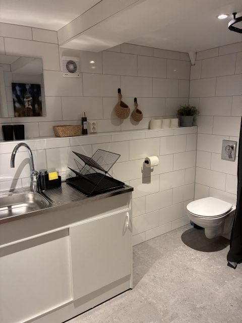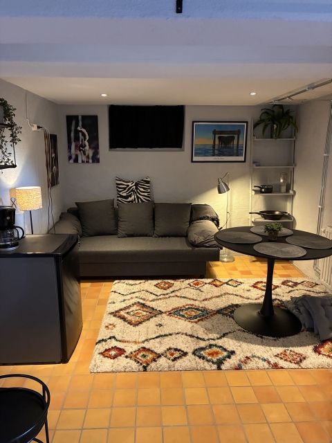 En supertrevlig nyrenoverad lägenhet med stora glaspartier ut mot en uteplats. Två avdelade rum. Ett ”sovrum med kontinentalsäng 160 cm och ett rum med bäddsoffa 140 cm, matplats och enkelt kök med tillgång till kokplatta, Micro, kyl, airfryer, kaffebryggare, vattenkokare mm Stor toalett med ny dusch och riktigt fräscht. I hyran ingår sängkläder och handdukar.