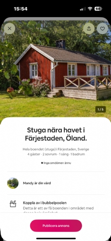 Läget är en av stugans stora fördelar. Du har nära till havet ca 2-3 km, där du kan ta morgonpromenader, bada eller njuta av solnedgången. Samtidigt ligger centrum i Färjestaden på gångavstånd, med mysiga caféer, restauranger och små butiker.