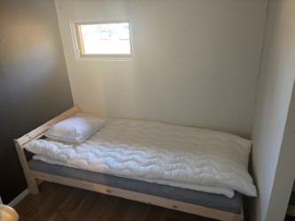 Här får ni en stuga som är naturnära med 1 minuts promenad till en skön sandstrand. Inom området finns restaurang, 18 håls golfbana, 9 hålsgolfbana, frisbeegolf, padelbanor samt elljusspår och många härliga skogsstigar för avkopplande promenader. Stugan består av 3 rum och kök med 4 bäddar samt badrum med dusch. Spisplattor, köksfläkt, mikrovågsugn, kaffebryggare samt övrig förekommande utrustning. Ni behöver ta med egna lakan örngott samt handdukar till toa och kök. Diskmedel och tvål ska ni också packa ner.