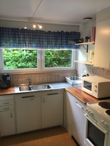 Utemöbler: Terass i östligt läge under tak med stolar, bord och grill. Kök med bla: Diskmaskin Kylskåp frysfack Spis + ugn Micro Kaffebryggare Brödrost Vattenkokare