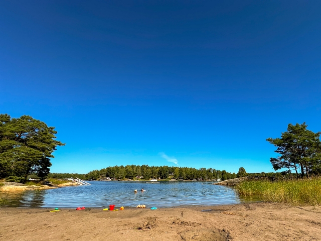 Huset ligger på Djurö, endast några hundra meter från havet och ca femhundra meter från områdets badplats med sandstrand, klippbad och flytbrygga.