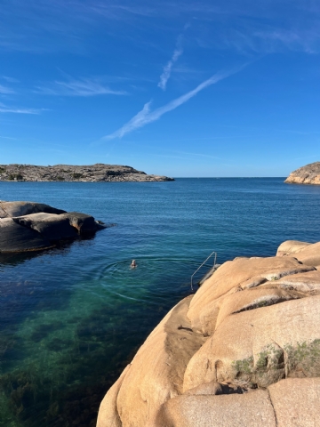Huset ligger på en stor trädgårdstomt i sydvästläge, endast 50 meter från bryggor och bad. Terassen bjuder en fantastisk vy över farleden med sitt skådespel av förbipasserande båtar.