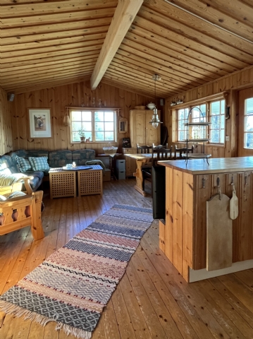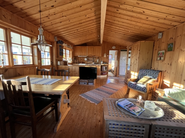 Storstuga med välutrustat kök med spis/ugn, kyl/frys, micro, kaffebryggare, vattenkokare, brödrost. Tv samt Wifi/internet. Bord med sittplats för 7-8. WC/Dusch i huset.