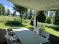 Härlig altan med matplats, sjöglimt. Stor kolgrill.