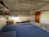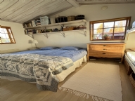 Sovrum med dubbelsäng och våningssäng, 4 bäddar.