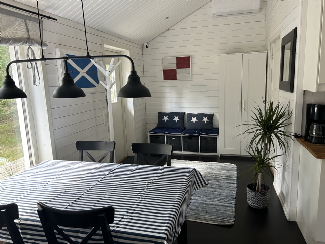 Stugan hard 2 sovrum, modernt kök, stort matrum och vägg i vägg med köket når ni ett mysigt allrum med stora fönster.