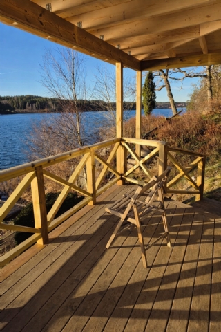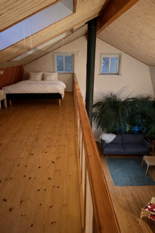 Stora huset (ca 140 kvm+30kvm) Det stora huset är ett rymligt och hemtrevligt ekohus med en varm och inbjudande atmosfär. Här finns ett stort sovloft samt ett sovrum med två enkelsängar på entréplan. På nedre plan finns ytterligare ett sovrum med dubbelsäng. Huset har ett relativt välutrustat kök, ett badrum med dusch och badkar samt ett stort vardagsrum med braskamin och generös takhöjd som skapar en luftig känsla. Det finns även en tvättstuga. Totalt finns 8+1 sovplatser. Utanför väntar en stor nybyggd altan med markiser, trädgårdsmöbler och grill – perfekt för långa sommarkvällar. Lilla huset (ca 50 kvm) Den mindre stugan är ett mysigt äldre torp med mycket charm. Här finns ett kök och vardagsrum med braskamin, ett sovrum samt ett badrum med dusch och toalett. Från den inbyggda glasverandan och altanen har man fin utsikt över omgivningen. Totalt finns 4+1 sovplatser. Den låga takhöjden vid takbjälkarna bidrar till den genuina torpkänslan och ger huset en särskild karaktär.
