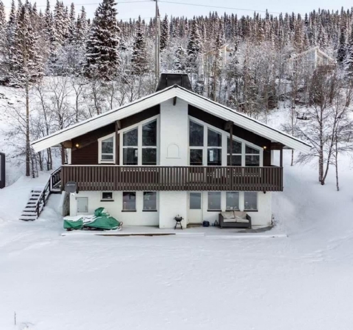 Lägenheten på 120kvm har ryggåstak med en takhöjd på 4,5m. Stora fönster med fantastisk utsikt över Åresjön & Renfjället.