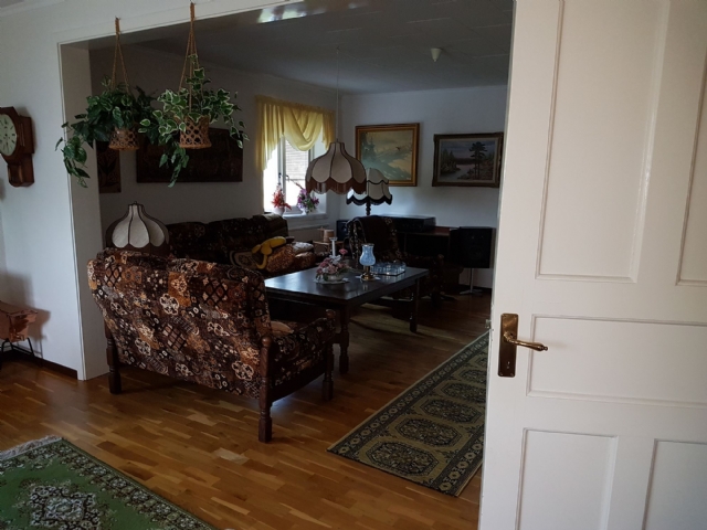 Rymligt boende: Vår stuga rymmer bekvämt upp till 9 personer och säkerställer att alla har gott om utrymme att koppla av och varva ner. På entréplan finns ett stort allrum med matbord och tv-hörna, stort kök med fantastisk sjöutsikt och det mesta för mat och bak, sovrum/litet allrum med bäddsoffa för 2 personer samt WC med dusch. På övervåningen finns 2 sovrum med 4 respektive 3 bäddar, samt en ytterligare wc. Inomhus har tiden nästan stannat. Det andas 70-tal och även sällskapsspelen är från samma tid. Diskmaskin, kyl/frys och toaletter är nytt från 2021.