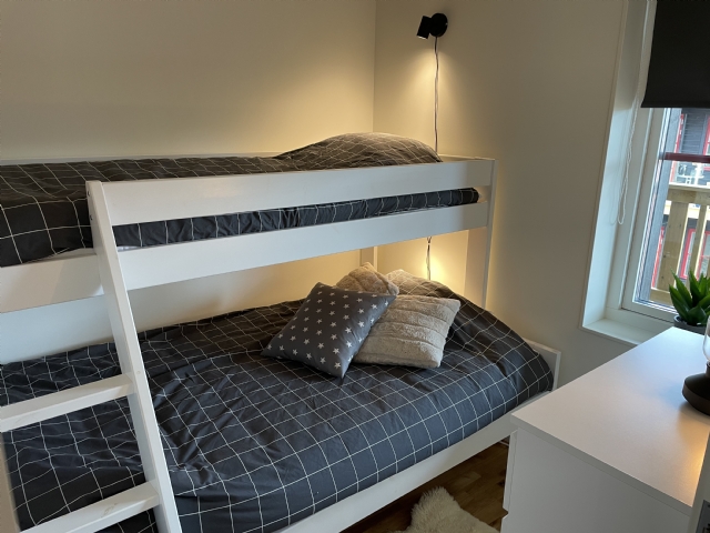 SKI IN/SKI OUT I STORHOGNA Nyproducerad lägenhet i barnvänliga Storhogna. Den ligger nära fantastiska längdspår och fina slalombackar. 78 kvm med tre sovrum. Två med dubbelsäng och ett med våningssäng 120/80 cm. Braskamin, bastu, wifi, TV 58” med kanaler från Allente, två wc, tvätt/tork mm. Ett sovrum har separat TV 50” för spel eller Chromecast/Apple TV (det tar ni med själva). Lägenheten ligger bredvid M-huset som har restaurang, bowling, shuffelboard, och minilivs. 1,5 km till Högfjällshotellet med SPA och två restauranger. Välj mellan två olika liftsystem direkt från lägenheten. Storhognas blå och gröna skidbackar är några stavtag bort. Eller ta knappliften till toppen av Klövsjös liftsystem, med hela 345 m fallhöjd och riktigt utmanande backar. Ett separat liftkort för enbart Klövsjö/Storhogn går att köpa betydligt billigare än Skistars vanliga liftkort (vilket även omfattar Björnrike och Vemdalsskalet). Vill ni testa Vemdalsskalet (10 min) eller Björnrike (30 min) går det gratisbussar dit en gång i timmen. Lägenheten är rök- och djurfri. Hyresgästen städar själv. Söndagsbyte.