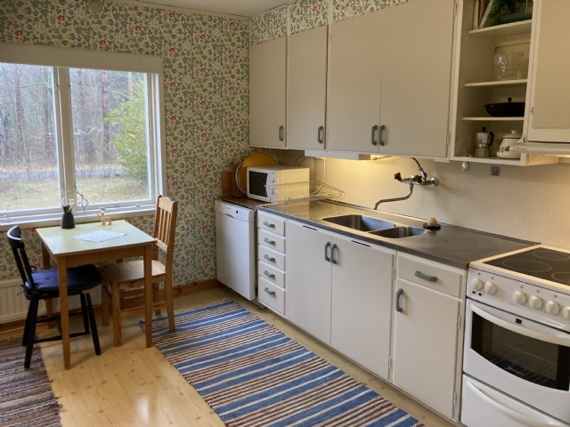 Huset är fullt utrustat för ett året-runt-boende. Kök På första våningen finns det ett välutrustat kök med allt man behöver (diskmaskin, mikrovågsugn, spis, mm) och ett litet bord med två stolar Vardagsrum Vardagsrummet har ett matbord som går att utöka till 6/8 platser, en soffa, fåtöljer, en brasa och TV