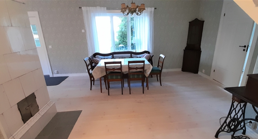 Uppvärmning: Luft-vattenpump. Golvvärme i hela huset.