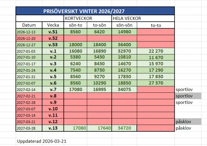 Prisexempel visar lågprisveckor som t.ex. v.51. Se prislista i bilder.