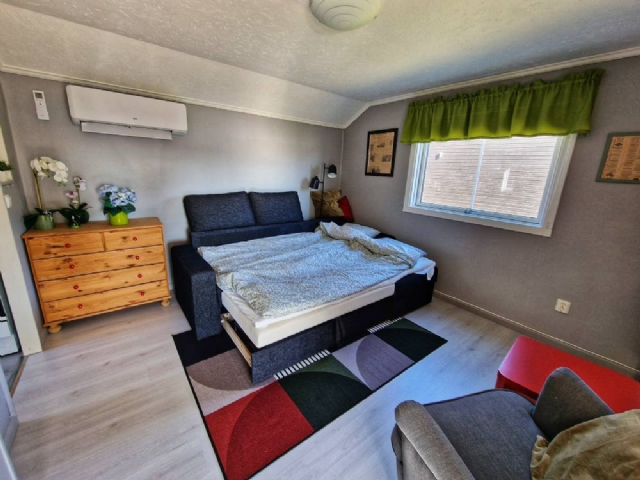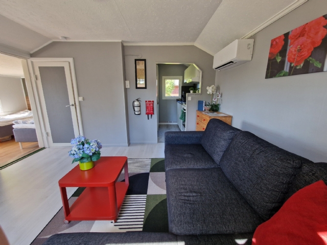 På sina 35kvm har du ett modernt pentry med det du behöver för att laga mat.  Wc, dusch (80*80) & tvättmaskin. Två 80 sängar, matsalsbord för 4 personer.   Bäddsoffa, bädd mått 140*200 Uteplast med bord och stolar