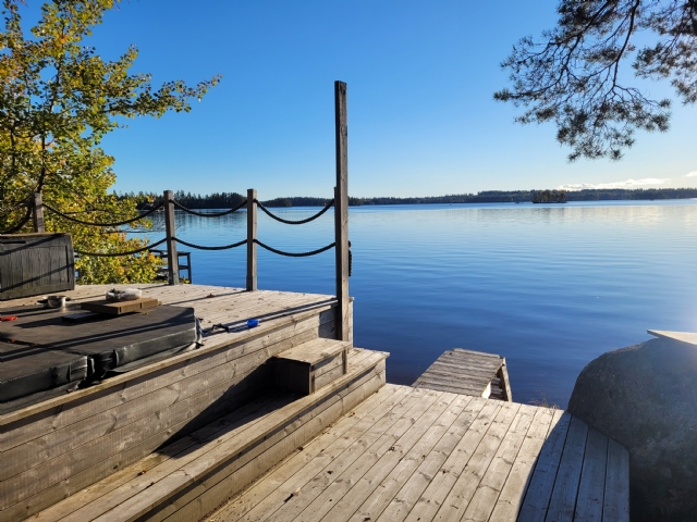 Välkommen till en liten stuga direkt på sjökanten där man kan njuta oavsett väderlek. Väl tilltagen vedeldad badtunna med bubbelsystem och ledbelysning, elbastu och stor veranda med trädgårdsmöbler, solstolar och grillplats samt vacker utsikt över Laxsjön där man via badstegen lätt kan ta sig ett svalkande dopp i det klara vattnet med sandbotten.
