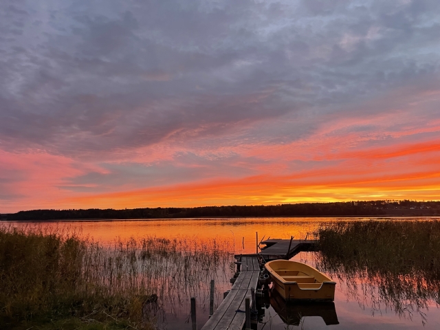 Huset ligger direkt vid vattnet. Här finns en roddbåt som ingår, och under sommaren finns möjlighet att hyra till motor. Perfekt för en tur i solnedgången eller en stilla morgon på fjärden.