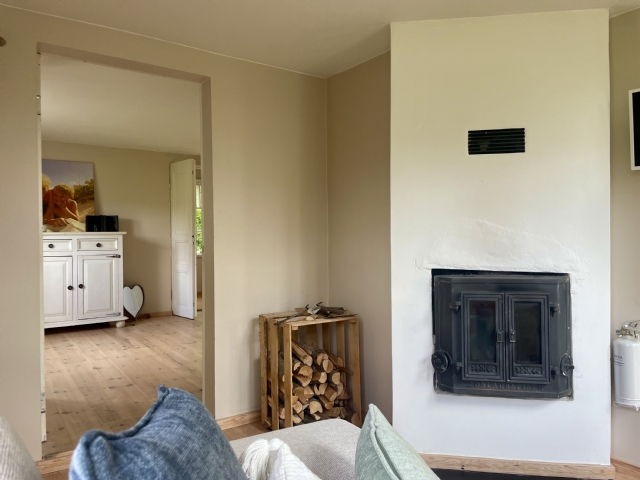 Stugan har tre kaminer – en i vardagsrummet och en i varje sovrum – som sprider värme och en mysig atmosfär året runt. Vardagsrum, kök och matsal ligger i öppen planlösning, vilket ger rymd och ljus. På loftet finns ett litet, mysigt TV-hörn där man kan dra sig undan.
