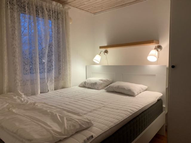 Tre sovrum Ett rum med 1 dubbelsäng Ett rum med 2 enkelsängar (kan skjutas ihop) Ett rum med våningsäng