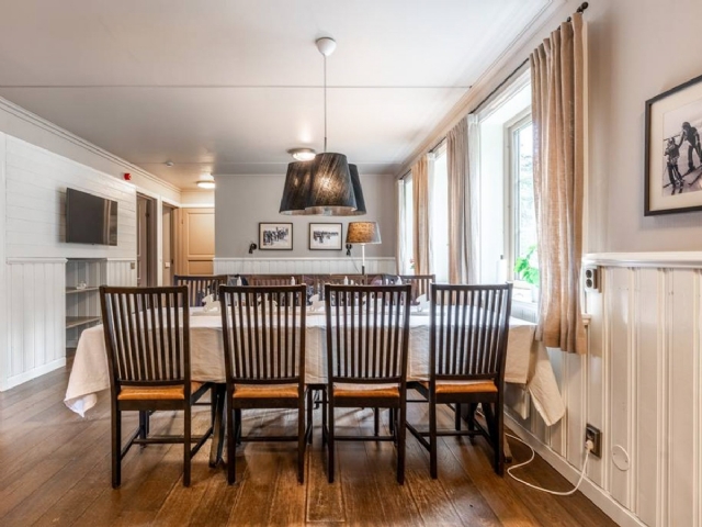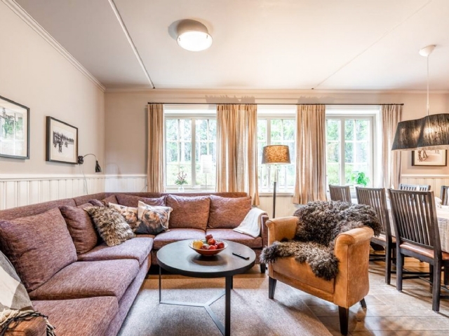 Allrum med soffgrupp, TV och matgrupp för 8 personer,