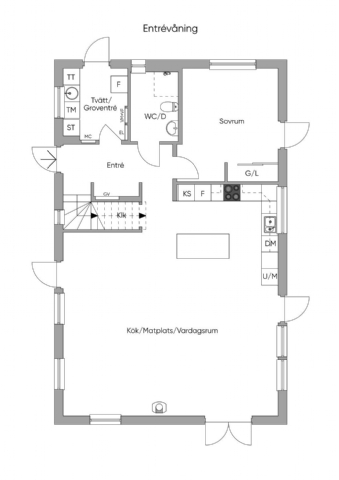 Huset består av en nedanvåning med öppen planlösning kök/matdel och vardagsrum. på nedervåningen finner vi även tvättstuga, ett sovrum (dubbelsäng 180cm) med utgång till trädgården och en toalett med dusch.