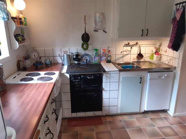 Fullt utrustat kök, med husgeråd, mikro, kaffebryggare, vattenkokare med mera, samt diskmaskin.