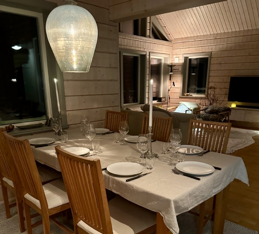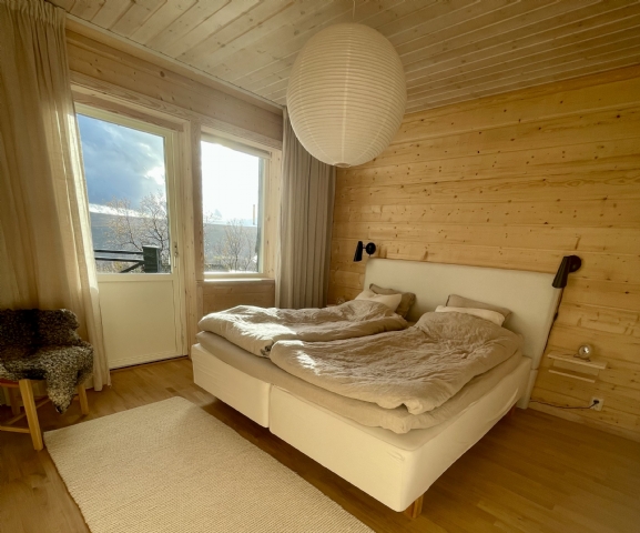 Huset är nyrenoverat och har alla moderniteter och bekvämligheter. Boarean är 100 + 10 kvadratmeter fördelat på storstuga full takhöjd, smart-TV och kamin samt loft, 3 sovrum, badrum med bastu och tvättmaskin/torktumlare, extra WC. Bäddplatser för 8 personer fördelat på en dubbelsäng i masterbedroom (2x90cm), en familjesäng med 140 cm underslaf och 90 cm överslaf samt en familjesäng 120 cm underslag och 90 cm överslaf. På loftet finns två 90cm sängar. Köket är inrett med kyl, frys, induktionsspis, fläkt, mikro, diskmaskin, kaffebryggare, brödrost samt separat stort matbord. I hallen finns ett torksskåp för torkning av fuktiga kängor, pjäxor och skidkläder. Samtliga rum i markplan har vattenburen golvvärme och och värms upp med en effektiv värmeåtervinningspump.