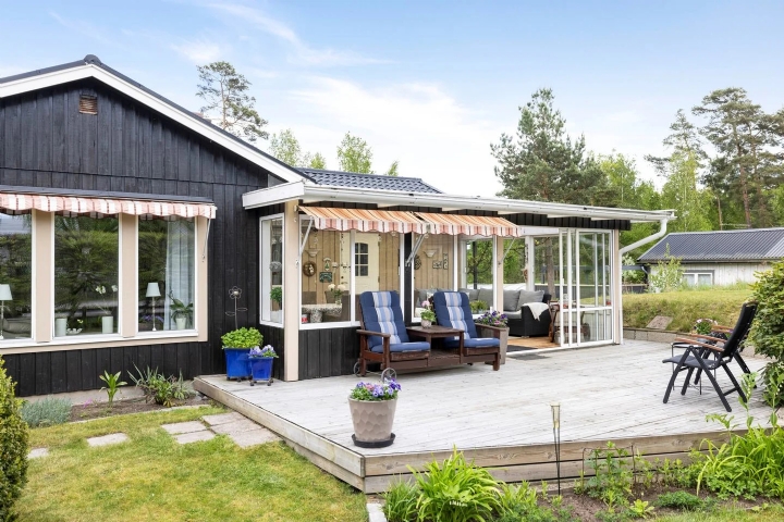 Stuga 65 m2 Inglasat uterum 15 m2 Friggebod 15 m2