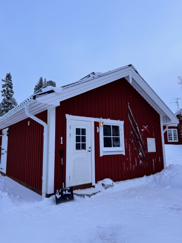 Stuga nära bykärnan, längdskidspår och skoterspår, 2 km till skidanläggningen.