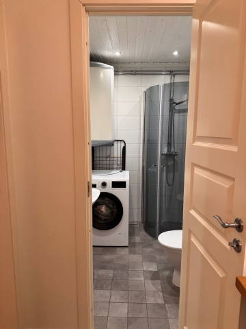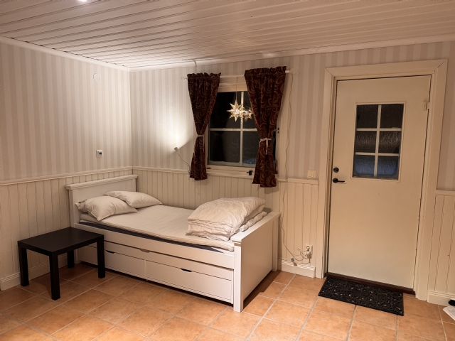 Vardagsrum, sovdel och kök i ett. Separat badrum med tvättmaskin. Kök med liten spishäll, mikro, kyl med frysfack och airfryer (ingen vanlig ugn) Smart TV i vardagsrum/sovdel. OBS inget internet i stugan.