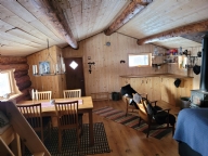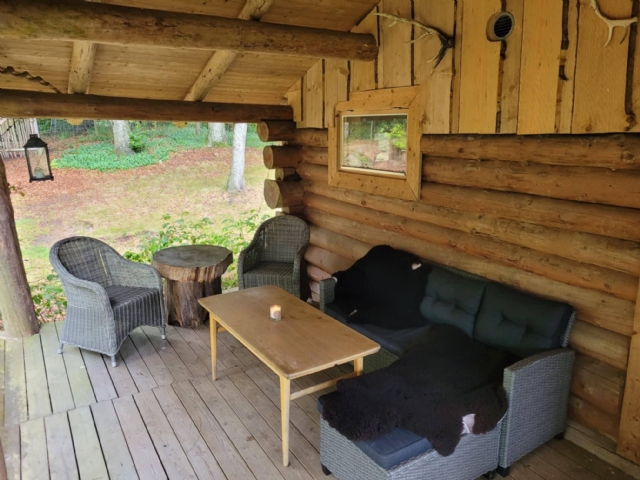 - Ingen el. - Inget rinnande vatten. - Det finns utedass. - Timmerstugan är på 35 kvm och har en öppen planlösning. - Timmerstugan är möblerad och utrustad med sängar, köksbord, stolar och två fåtöljer. - Det finns sängplatser för 4 personer. En dubbelsäng och en våningssäng. Våningssängen har en 120 cm och en 90 cm säng. Det finns 4 täcken, och 4 kuddar. - Köksdelen består av en bänkyta där du förbereder all mat för att sedan tillaga den över öppen eld på grillgaller, Muurika eller tillhörande gasplatta inne i stugan. - Det finns matkåsor, drickskåsor, bestick och all annan köksutrustning som behövs. - I uthyrningen ingår ett litet campingkylskåp som rymmer dagsbehovet av mat. Under vinterhalvåret står kylskåpet utomhus och kyls naturligt. När utomhustemperaturen höjs under vår- och sommar, är det hyresgästens ansvar att hantera all nedkylning och förvaring av mat. Det finns ingen möjlighet till elektrisk nedkylning av matvaror i stugan. - Diskning sker alltid utomhus pga risken att skada inredning vid vattenanvändning inomhus. Instruktion och allt du behöver för diskning finns i stugan. - Verandan är möblerad och där kan du vistas i alla väder och säsonger. - Värmetåliga grillvantar som du använder när du lagar mat utomhus. - Det finns ett portabelt gaskök, med en gasplatta för matlagning. - Städning vid avresa ombesörjs av hyresgästen. Allt för städningen finns i stugan.
