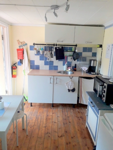 Köket har kyl & frysfack, 2 kokplattor med ugn, kaffebryggare, vattenkokare, micro samt porslin, TV ( endast marksända kanaler ),glas och diverse redskap. Dusch, WC, handfat ,Tillgång till vedeldad bastu ( finns på tomten, bokning tid griffeltavla på väggen ),Uteplats med trädgårdsmöbler, grill och en Damm.