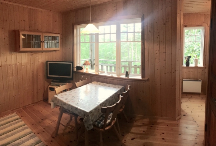 Stuga fullt utrustad för 4 personer. 50 m2 , Sovrum, Matplats/kök, Toalett (eltoa) med dusch och högt belägen solaltan 100 m från barnvänlig, privat strand och vedeldad bastu. Viss fiskeutrustning finns tillgänglig.