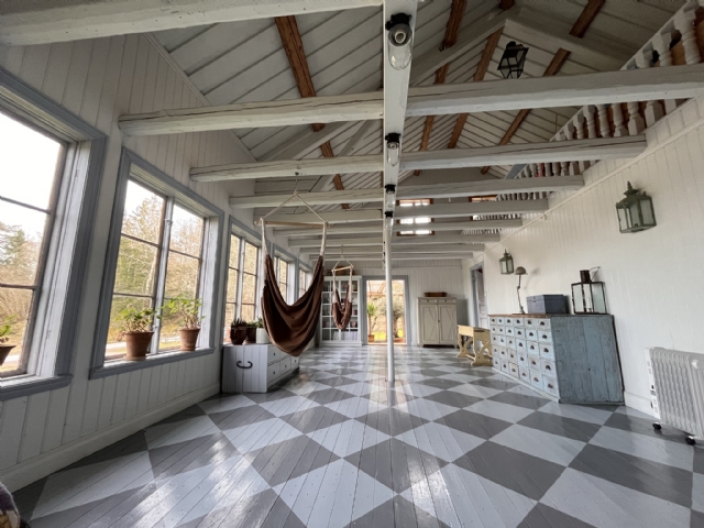 3 sovrum med bekväma sängar: 2x105cm sängar, 2x80 sängar och 160 säng. Stort vardagsrum på ca 45 kvm med ca 6 m takhöjd. Kök - fullutrustat. 1 toalett - separat dusch utomhus utan insyn Matplats både inne och ute Orangeri med soffa och fåtöljer Altan med utemöbler i trä och solstolar Utekök med stor grill Luftvärmepump Spjälsäng/barnsäng och barnstolar.