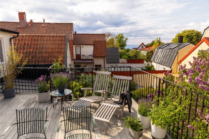 Fint lyxigt hus vid Södertorg, Visby med lyxig solig terass med havsutsikt och några flaskor vin till hyresgästen!